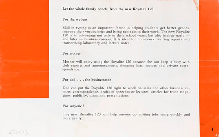 Next to literature on the history of technology, of the typewriter and the office, the Archive holds patent letters, textbooks and instruction manuals as well as historical postcards, letters, photographs and various kinds of advertising (leaflets and brochures, advertising stamps, newspaper ads, posters and signs, promotional gifts).