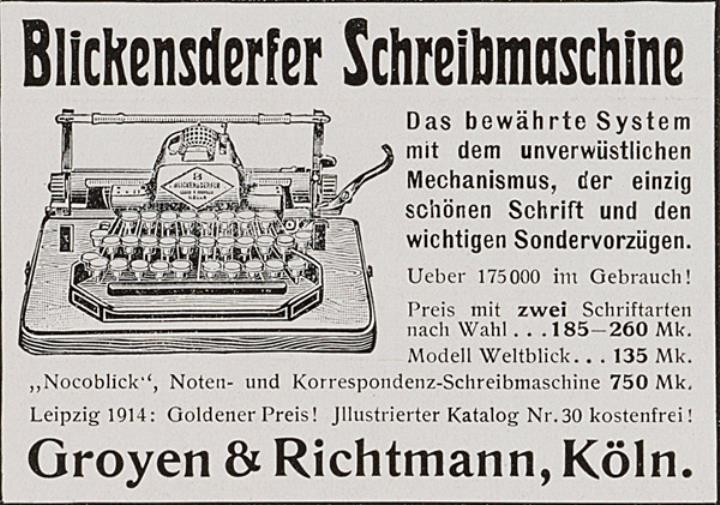 Werbeanzeige für Schreibmaschine Blickensderfer monochrom