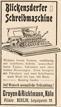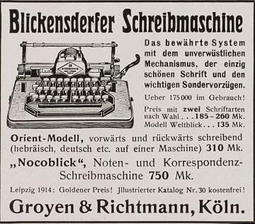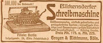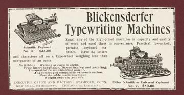 Werbeanzeige für Schreibmaschine Blickensderfer monochrom