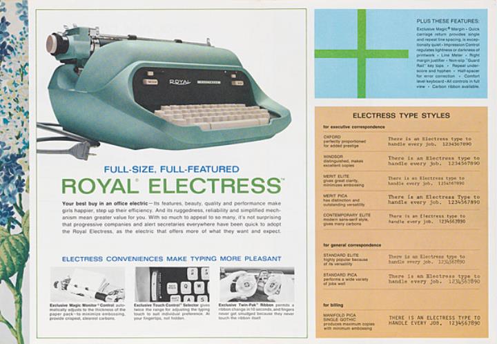 Faltprospekt für Schreibmaschine Royal Electress Nr. E 2B-64-151