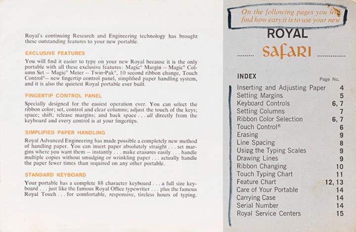 Bedienungsanleitung für Schreibmaschine Royal Safari Nr. SF-62-255- Rev. 2-1-64