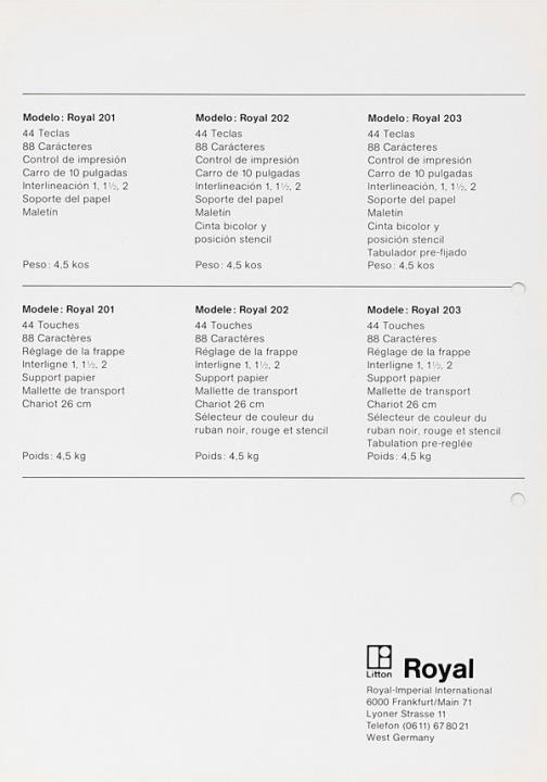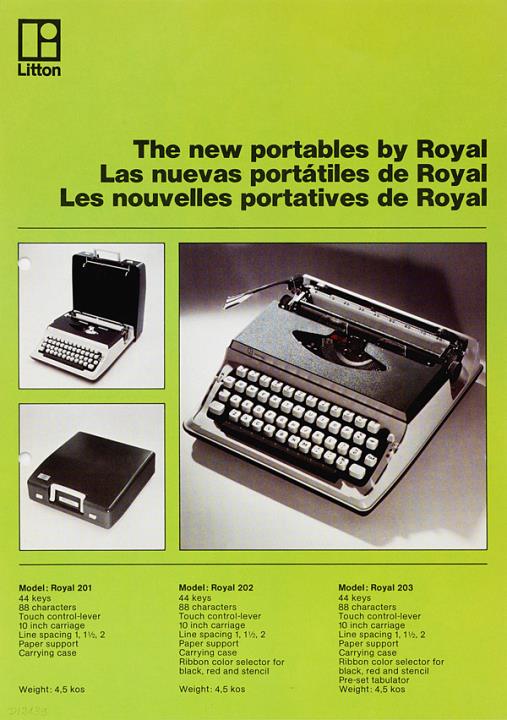 Prospekt für tragbare Schreibmaschine Royal 201, 202 und 203
