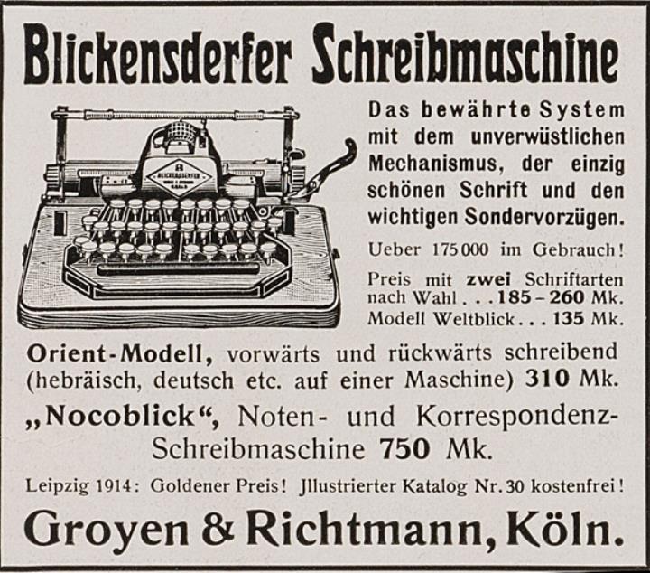 Werbeanzeige für Schreibmaschine Blickensderfer monochrom, zwei Exemplare