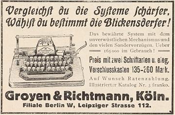 Werbeanzeige für Schreibmaschine Blickensderfer monochrom