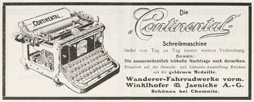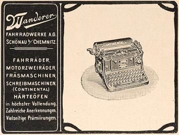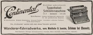 Werbeanzeige für Schreibmaschine Continental monochrom