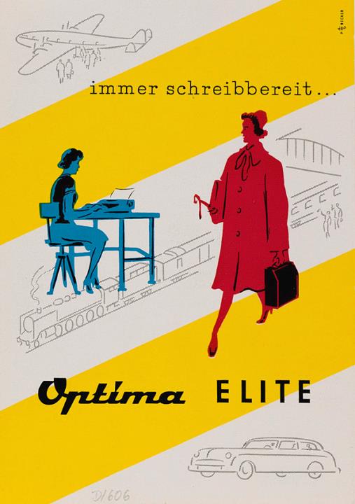 Faltprospekt für Schreibmaschine Optima Elite Nr. D615 B854 2932 III/26/2 Grafik: P. H. Becker