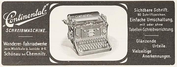 Werbeanzeige für Schreibmaschine Continental monochrom