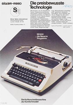 Faltprospekt für tragbare Schreibmaschine Silver Reed Datum handschriftlich vermerkt