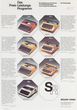 Prospekt für Schreibmaschine Silver Reed Ein lückenloses Sortiment an Schreibmaschinen von manuell bis elektrisch Datum handschriftlich vermerkt