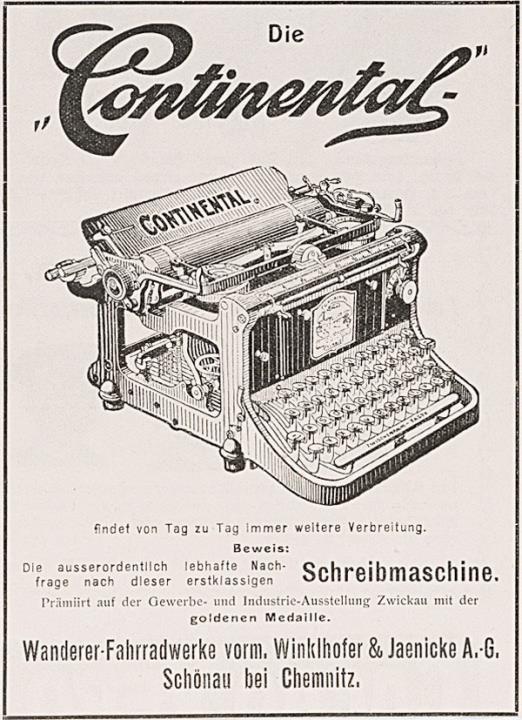 Werbeanzeige für Schreibmaschine Continental monochrom