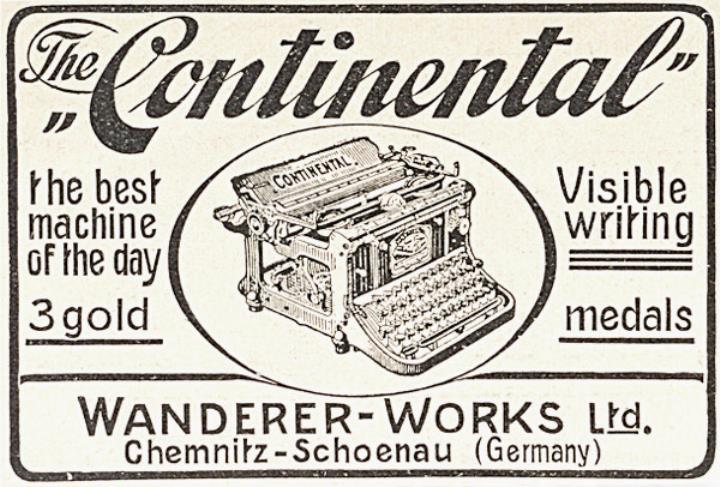 Werbeanzeige für Schreibmaschine Continental monochrom