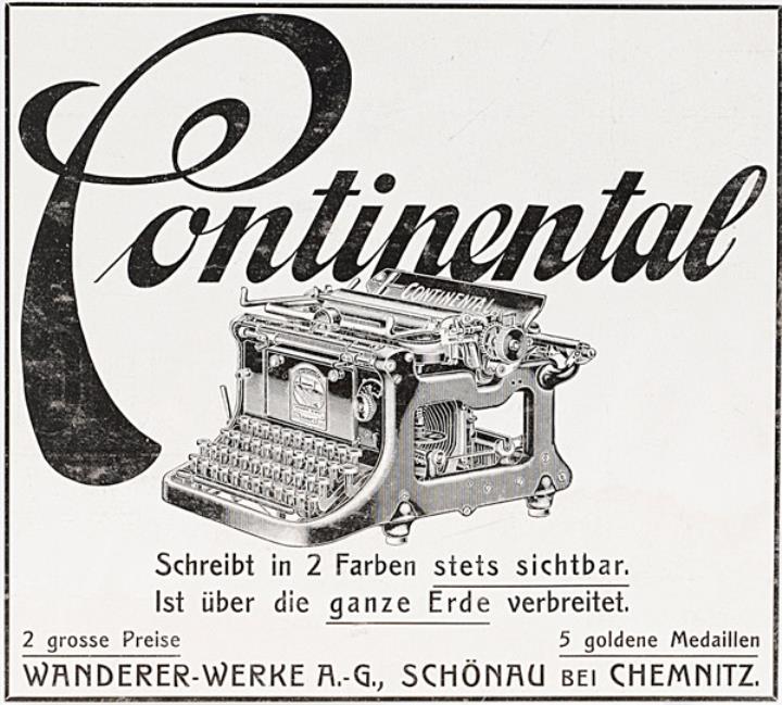 Werbeanzeige für Schreibmaschine Continental monochrom