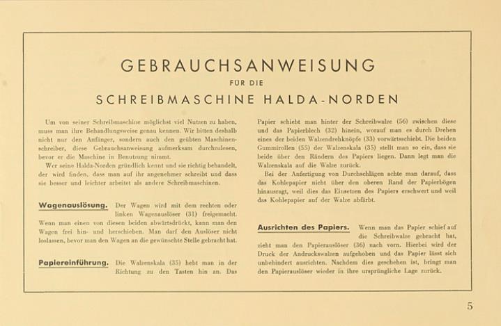 Gebrauchsanweisung für die Schreibmaschine Halda-Norden