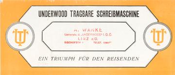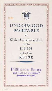 Faltprospekt für tragbare Schreibmaschine Underwood für das Heim und auf die Reise