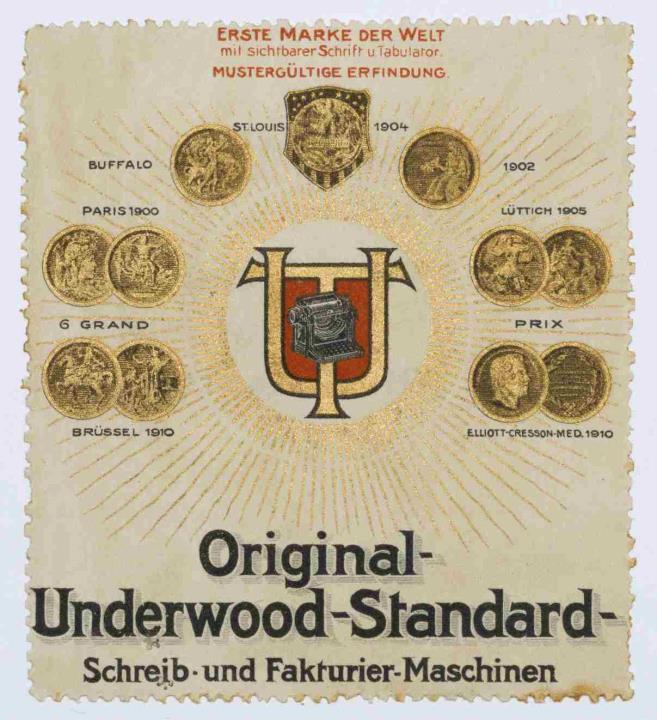 Reklamemarke/Werbemarke für Schreibmaschinenhersteller Underwood rechteckig, polychrom