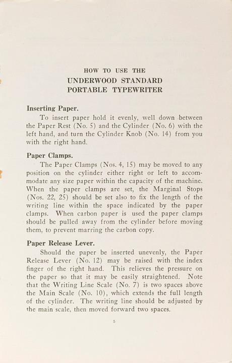 Bedienungsanleitung für tragbare Schreibmaschine Underwood Nr. 9-23-P-3