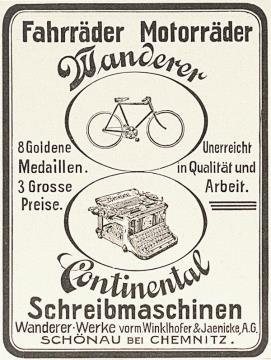 Fahrräder Motorräder Wanderer Continental Schreibmaschinen