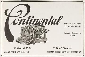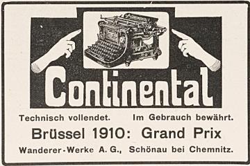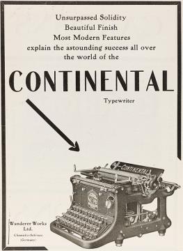 Werbeanzeige für Schreibmaschine Continental monochrom