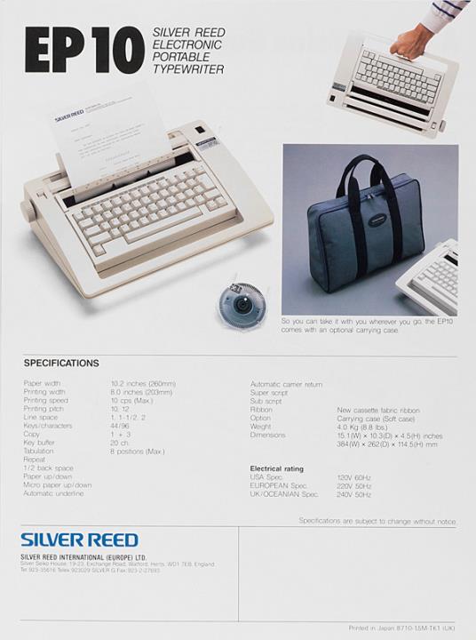Prospekt für elektronische Schreibmaschine Silver Reed EP10 Nr. 8710-1.5M-TK1