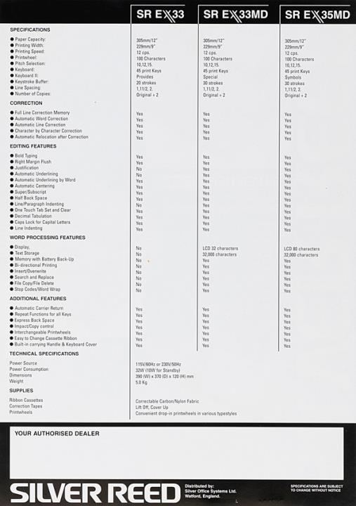 Prospekt für elektronische Schreibmaschine Silver Reed