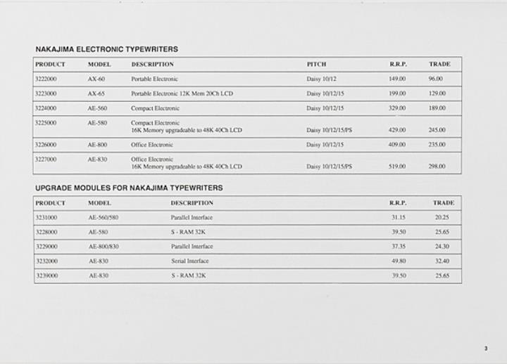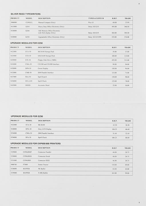 Preisliste für Büromaschinenzubehör Silver Reed Stand November 1990