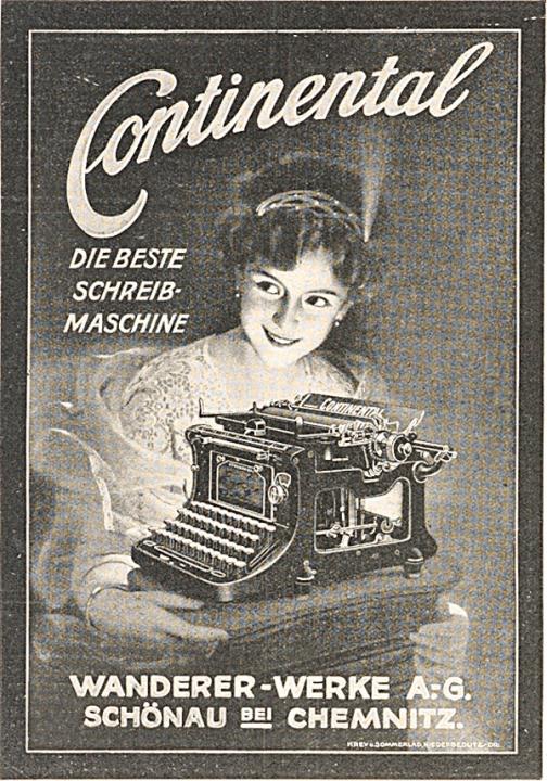 Werbeanzeige für Schreibmaschine Continental monochrom