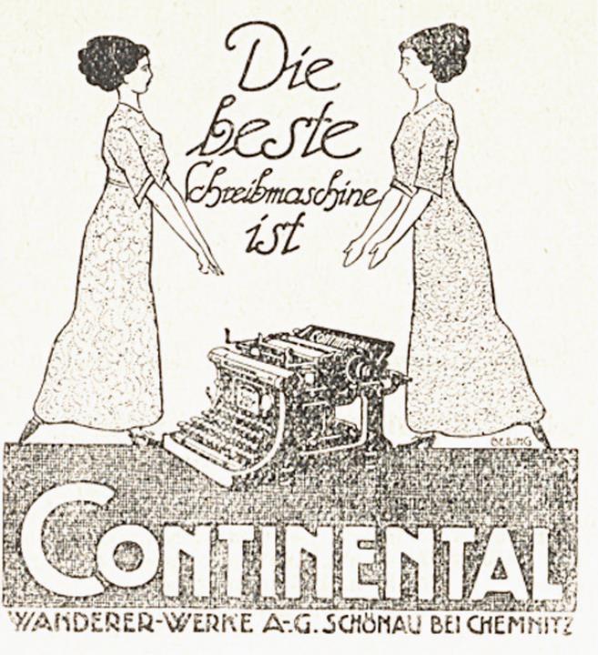 Werbeanzeige für Schreibmaschine Continental monochrom Grafik: Belling