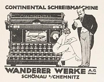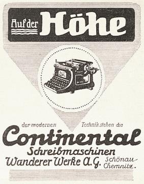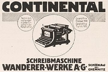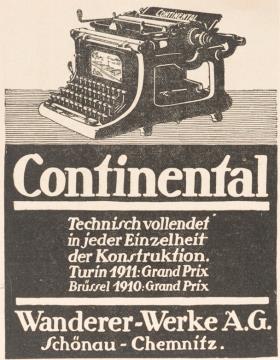 Werbeanzeige für Schreibmaschine Continental monochrom