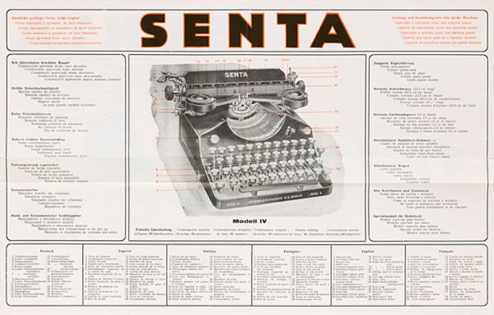 Faltprospekt sechssprachig für Schreibmaschine Senta