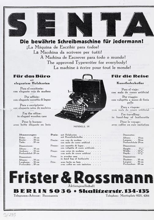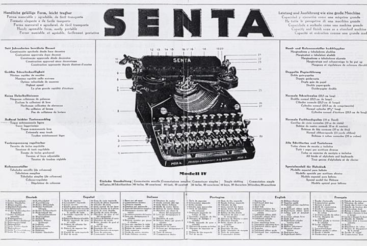 Faltprospekt sechssprachig für Schreibmaschine Senta Fotokopie