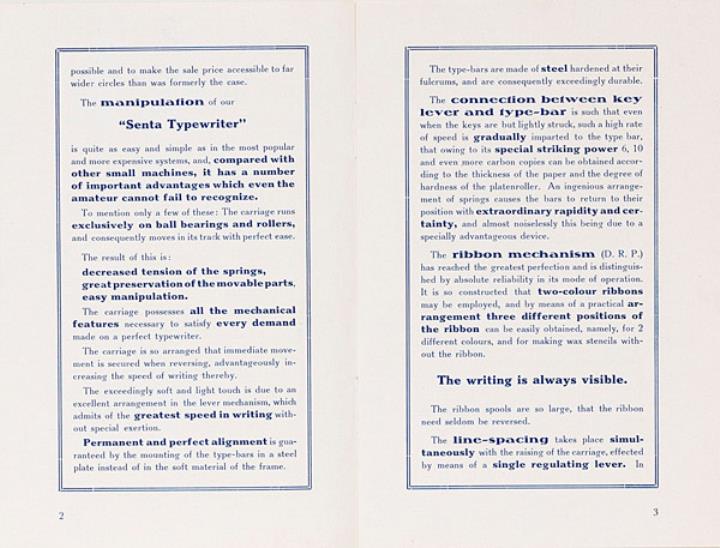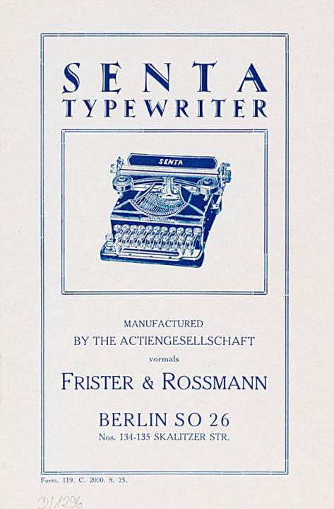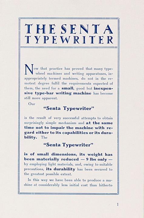 Prospekt für Schreibmaschine Senta Nr. 119.C.2000.8.25