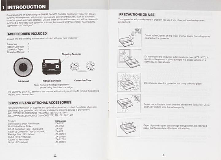 Sharp Portable electronic typewriter Model PA-3000 Operation Manual