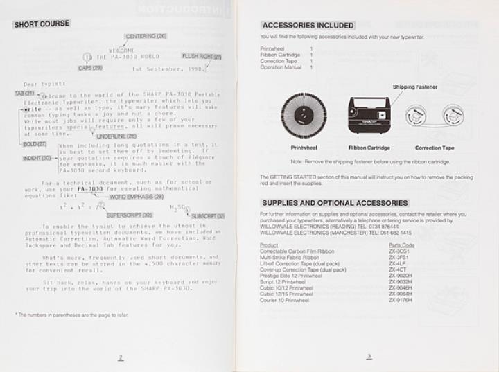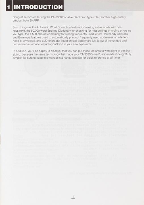Sharp Portable electronic typewriter Model PA-3030 Operation Manual
