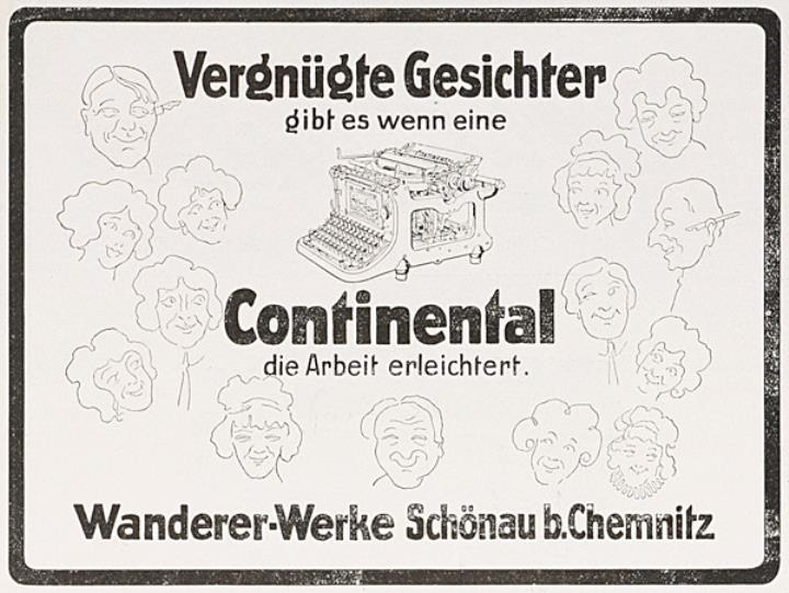 Werbeanzeige für Schreibmaschine Continental monochrom