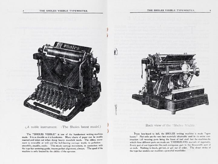 Prospekt für Schreibmaschine Sholes Visible Fotokopie, zwei Exemplare