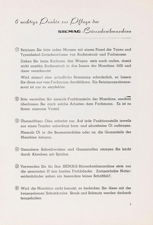 Behandlungs-Anleitung der Siemag Büromaschine