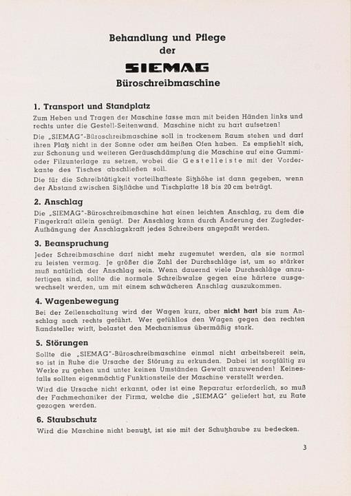 Bedienungsanleitung für Büroschreibmaschine Siemag