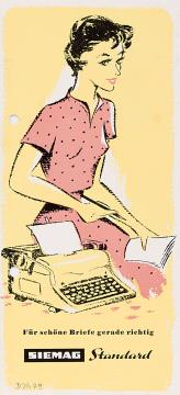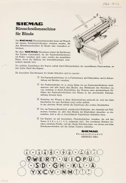 Prospekt für Büroschreibmaschine Siemag mit Sondereinrichtung zur erleichterten Bedienung für Blinde Datum handschriftlich vermerkt