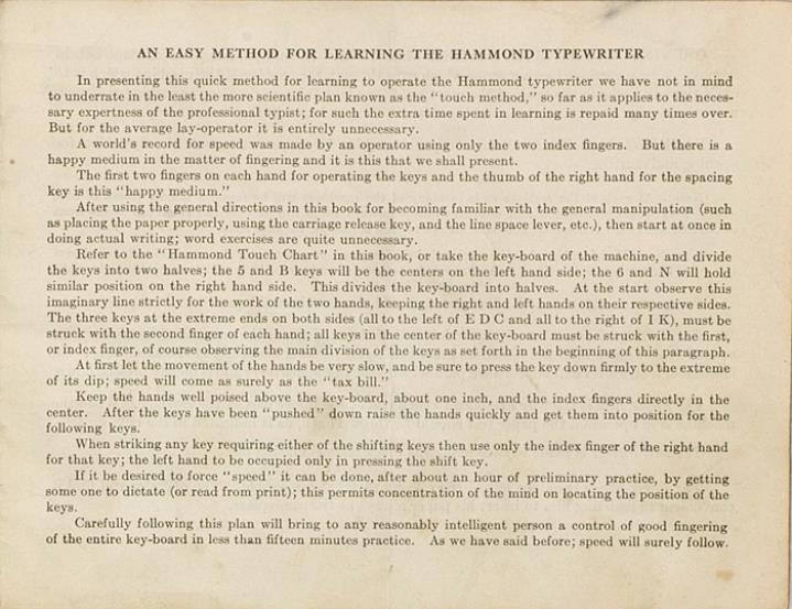 Bedienungsanleitung für Schreibmaschine Hammond The "Multiplex" Hammond Visible Typewriter Nr. D 5-19-10M, zwei Exemplare (eines fotokopiert, gebunden)