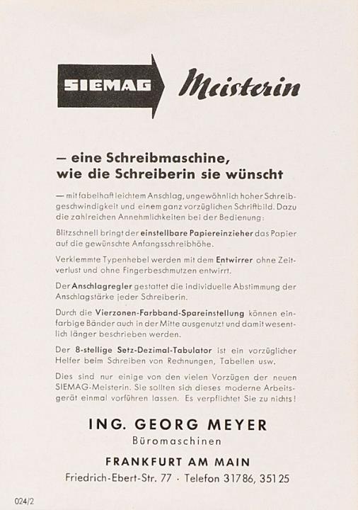 Faltprospekt für Büroschreibmaschine Siemag Meisterin Nr. 024/2