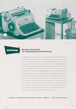 Prospekt für Schreibmaschine Siemag mit Haftumschaltung Nr. 040 Datum handschriftlich vermerkt