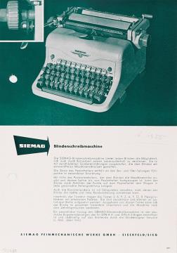 Prospekt für Schreibmaschine Siemag mit Sondereinrichtung zur erleichterten Bedienung für Blinde Nr. 037 Datum handschriftlich vermerkt