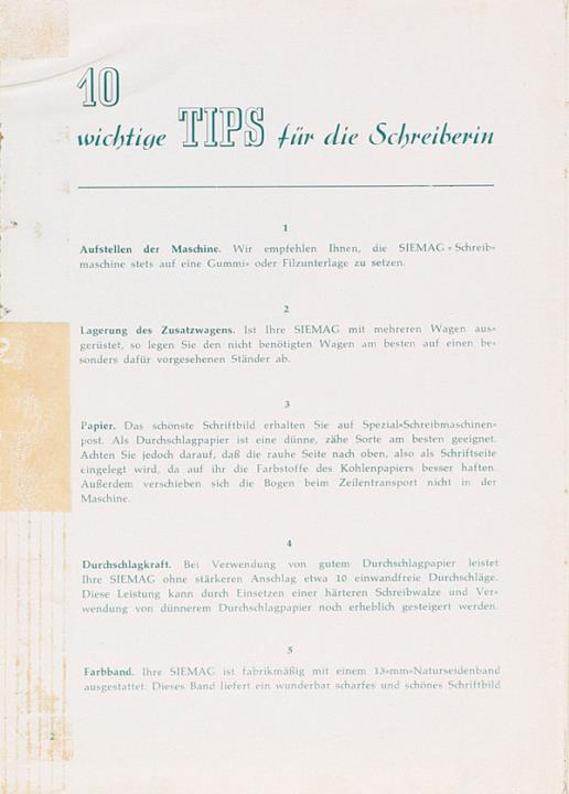 Bedienungsanleitung für Büroschreibmaschine Siemag Nr. 07