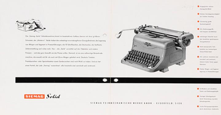 Faltprospekt für Schreibmaschine Siemag Solid Nr. 064 - 8.57 Pers.