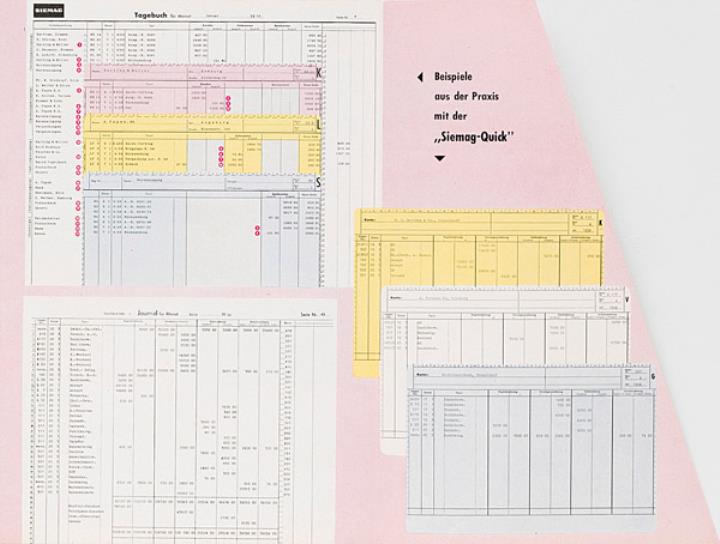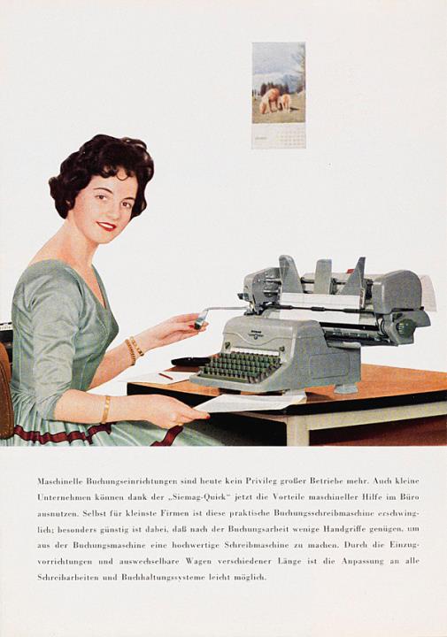 Faltprospekt für Schreib- und Buchungsmaschine Siemag Quick Nr. 1033/4/58