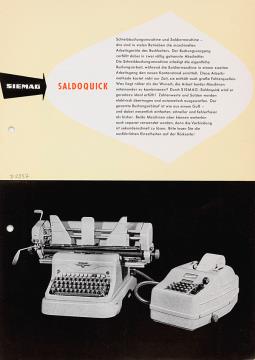 Faltprospekt für Schreib- und Buchungsmaschine Siemag Saldoquick Nr. 22/09/4.60.WeHi
