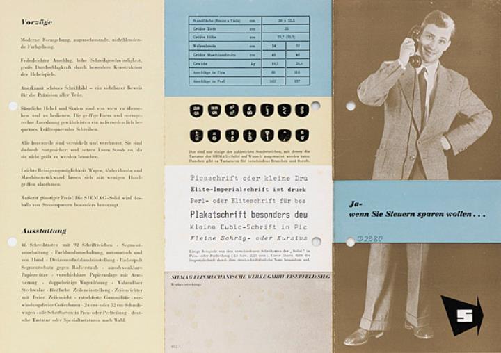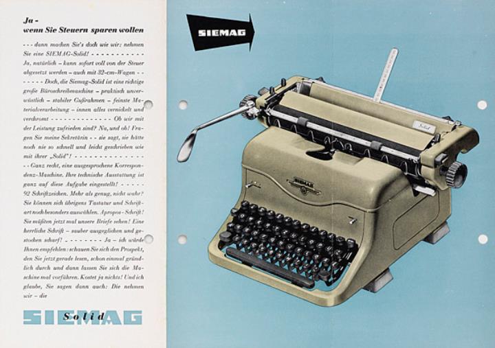 Faltprospekt für Büroschreibmaschine Siemag Nr. 013/1