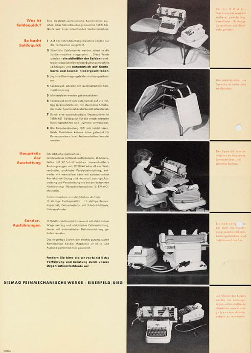 Prospekt für Schreib- und Buchungsmaschine Siemag Saldoquick Nr. 1008a
