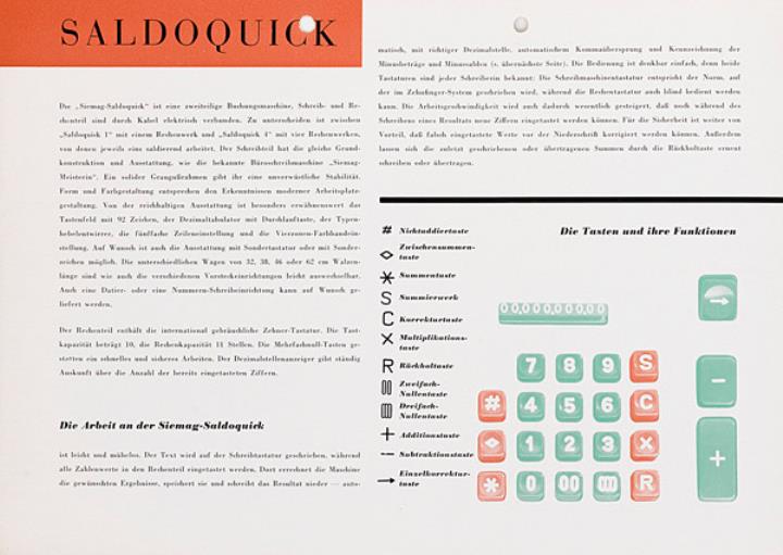 Prospekt für Schreib- und Buchungsmaschine Siemag Saldoquick Nr. 1015/2-8-57