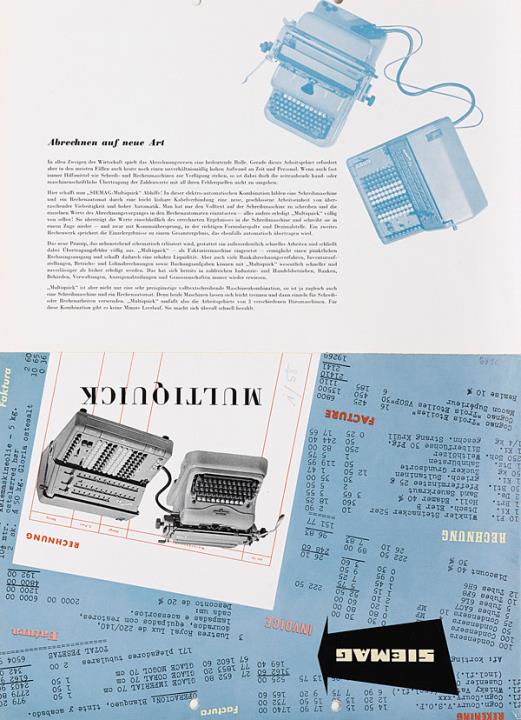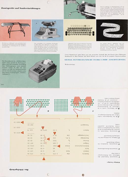 Faltprospekt für Schreib- und Fakturiermaschine Siemag Multiquick Nr. 1016 Datum handschriftlich vermerkt